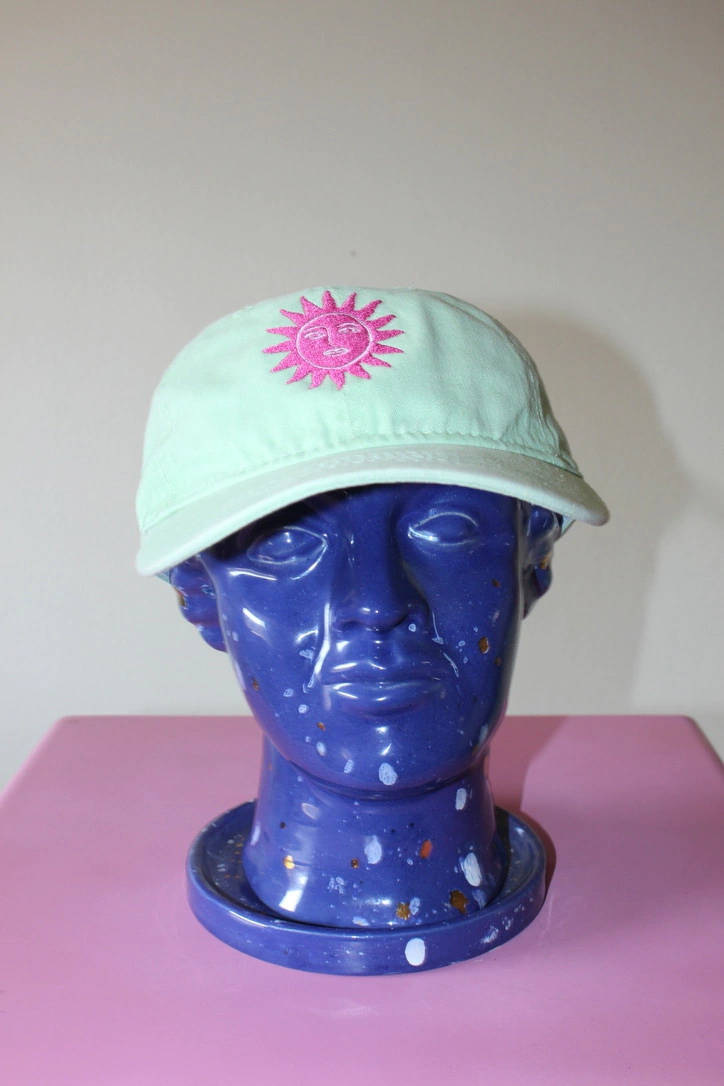 Gorras de variados colores ajustables con detalle de sol bordado.